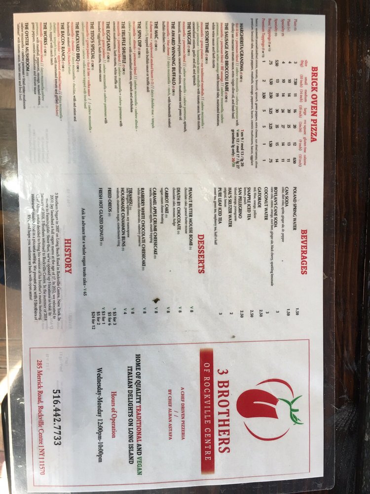 Introducing the menu at 3 Brothers of Rockville Centre, a delightful Italian pizzeria situated in the heart of Rockville Centre. This charming eatery offers a diverse menu that caters to all dietary preferences, featuring traditional and innovative options for pizza enthusiasts. Whether you crave a classic pepperoni pizza or a gluten-free alternative crafted with a homemade brown rice crust, 3 Brothers has you covered.